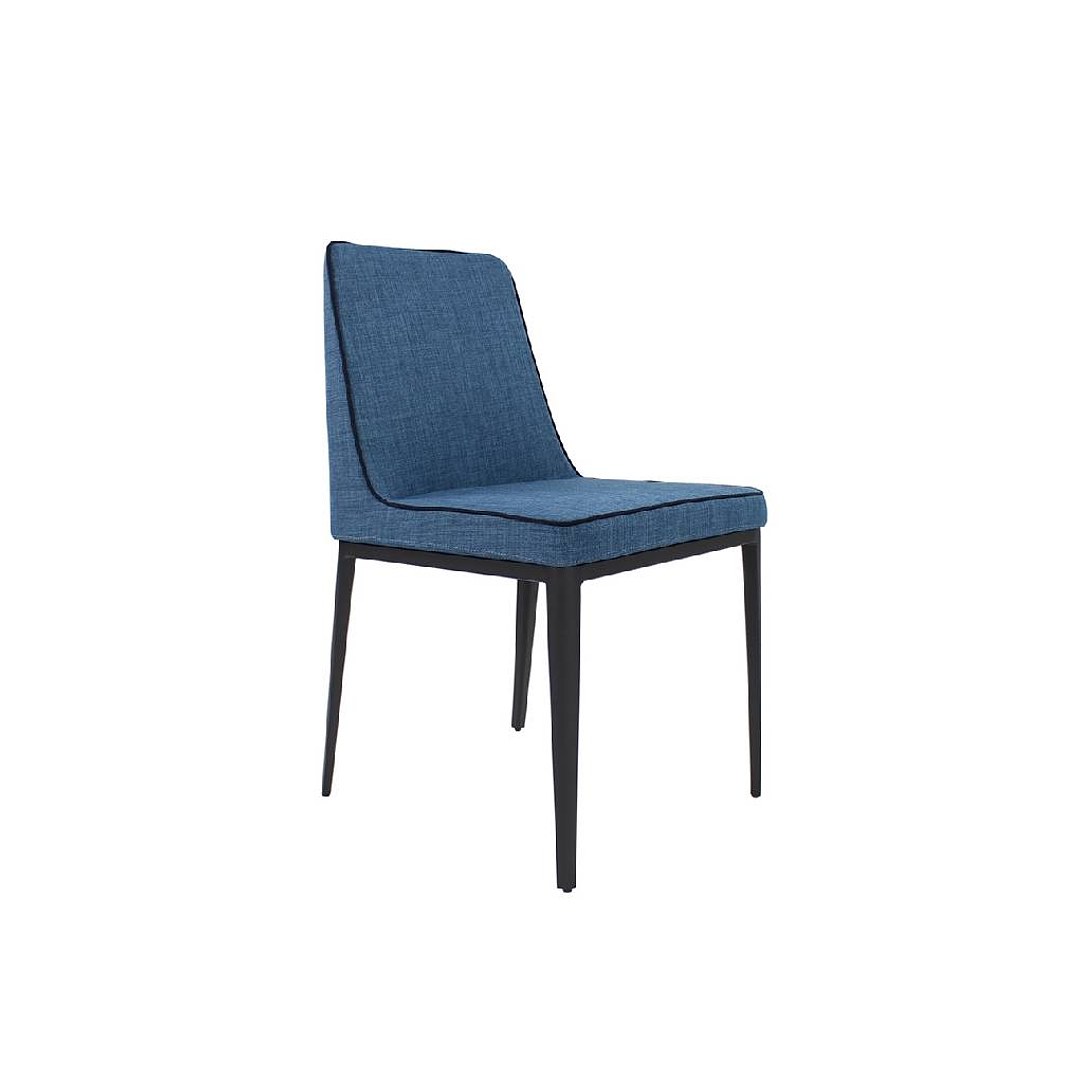 Cadeira estofada com estrutura de aço.
