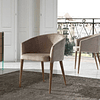 Cadeira estofada com estrutura de madeira maciça de nogueira.