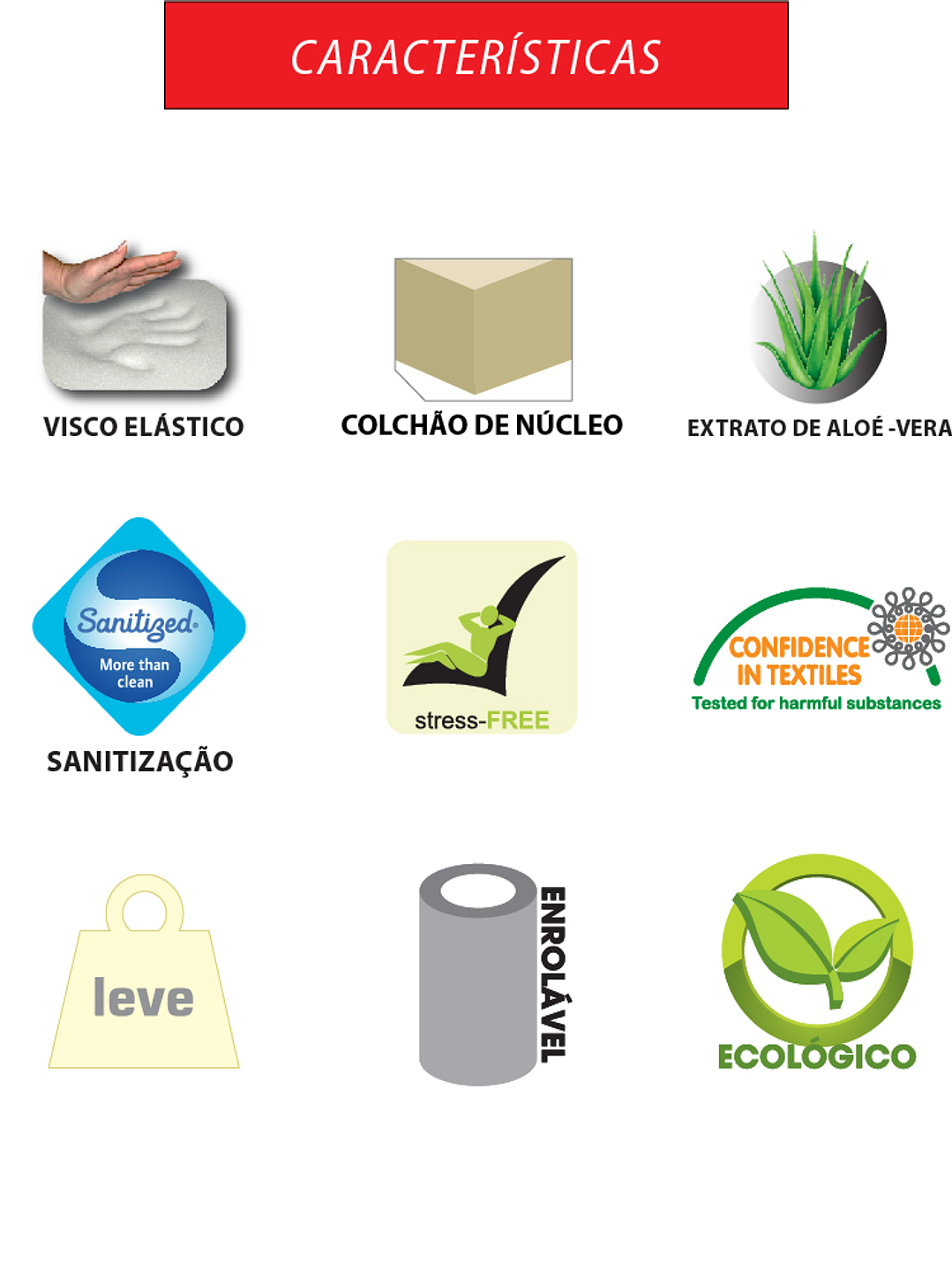 colchón Core con perfil visco-elástica que ofrece un alto grado de ergonomía y firmeza.