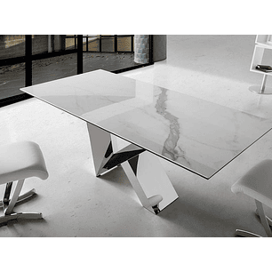 | Platea Table de salle à manger Collection Hessa Blanc brillant / Noyer avec acier inoxydable 1.268,00€